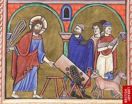 Let’s flip tables like our Lord. Pursuing righteousness in the court of our spirituality—the heart. We are God's temple. Remove the money changers, the things we’ve allowed to set up shop that have no business conducting business in our Father’s house—us. Jesus shows us that he wants to drive out what doesn't belong. And he wants to do the same with us. His cross hands us the whip. His empty tomb shows us how to swing.