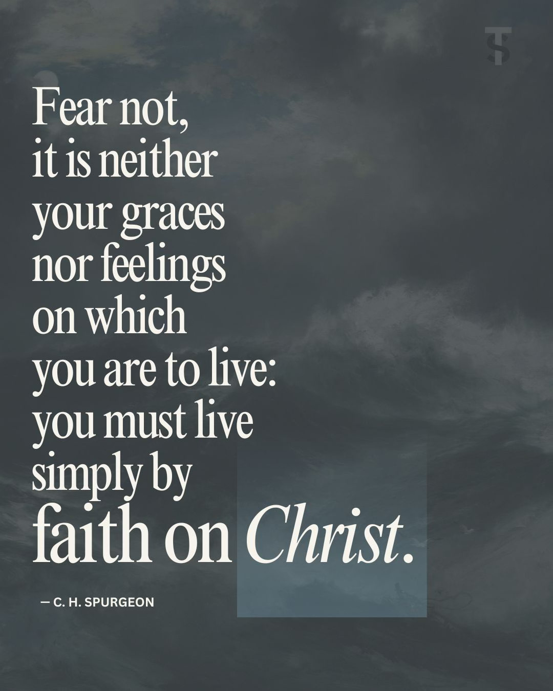 That is easy to read, but it is not so easy to feel. How is it with your heart this morning? Are you in the lowest depths of sorrow? Does corruption rise within your spirit, and grace seem like a poor spark trampled underfoot? Does your faith almost fail you? Fear not, it is neither your graces nor feelings on which you are to live: you must live simply by faith on Christ